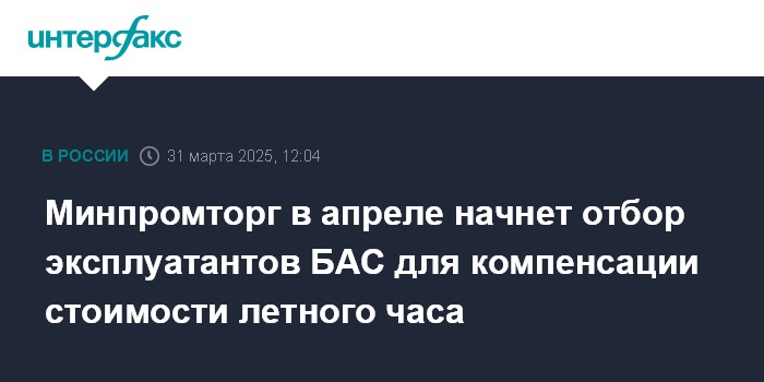 Москва. 31 марта. INTERFAX.RU - Минпромторг с 7 апреля начнет отбор эксплуатантов российских беспилотных авиационных систем (БАС) на получение субсидий для компенсации части стоимости летного часа.