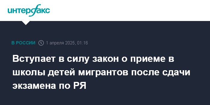 Москва. 1 апреля. INTERFAX.RU - С первого апреля вступает в силу закон о запрете принимать в школы детей мигрантов без знания русского языка.