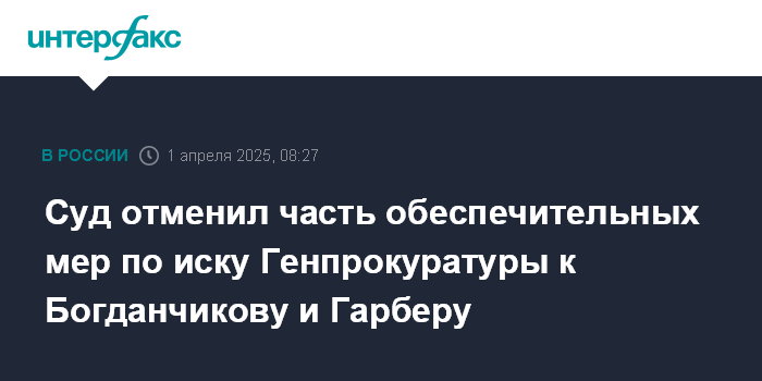 Суд отменил часть обеспечительных мер по иску Генпрокуратуры к Богданчикову и Гарберу