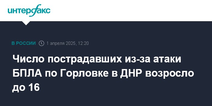 Москва. 1 апреля. INTERFAX.RU - Количество пострадавших в результате атаки БПЛА по Горловке Донецкой народной республики увеличилось до 16, сообщил мэр города Иван Приходько.