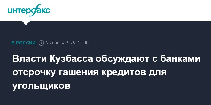 Москва. 2 апреля. INTERFAX.RU - Власти Кемеровской области ведут с банками переговоры о продлении сроков гашения кредитов угольными компаниями, которые из-за кризиса в отрасли находятся в тяжелой ситуации, сообщил в прямом онлайн-эфире губернатор региона Илья Середюк.