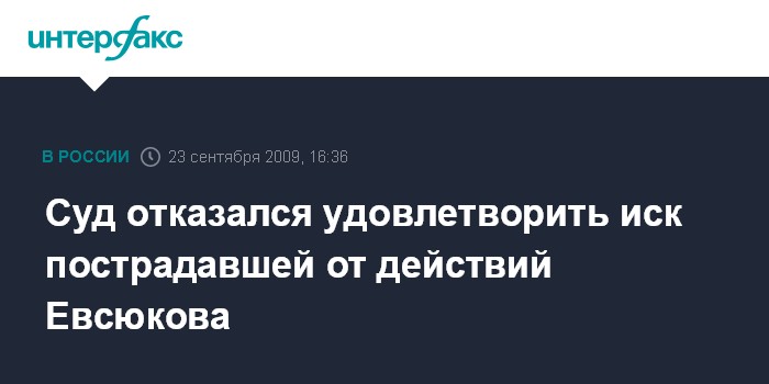 Суд отказался удовлетворить иск пострадавшей от действий Евсюкова