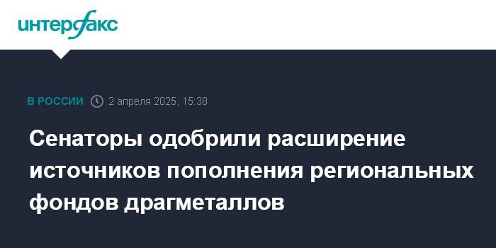 Сенаторы одобрили расширение источников пополнения региональных фондов драгметаллов