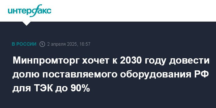 Минпромторг хочет к 2030 году довести долю поставляемого оборудования РФ для ТЭК до 90%