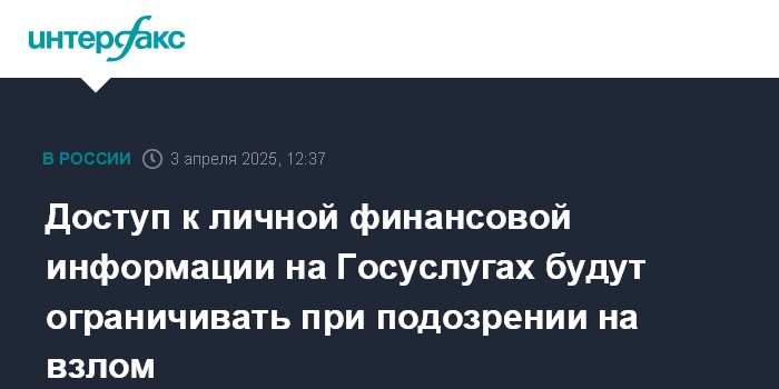 Доступ к личной финансовой информации на Госуслугах будут ограничивать при подозрении на взлом