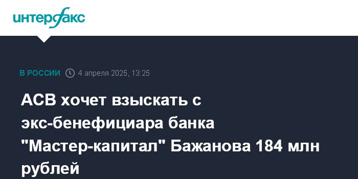 АСВ хочет взыскать с экс-бенефициара банка "Мастер-капитал" Бажанова 184 млн рублей