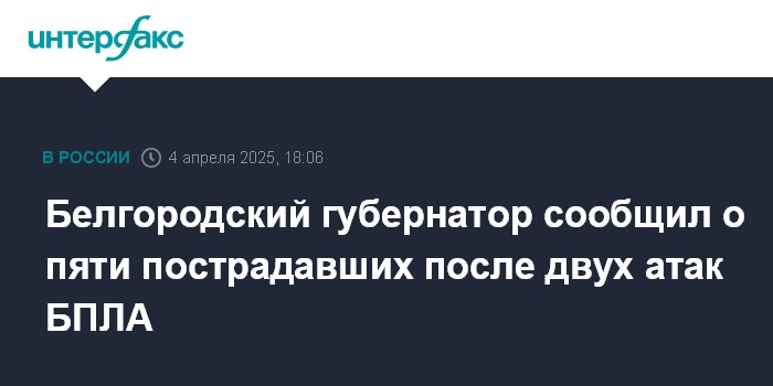 Москва. 4 апреля. INTERFAX.RU - В Белгородской области два муниципалитета Белгородской области подверглись атакам беспилотников, ранены пять человек, сообщил глава региона Вячеслав Гладков.