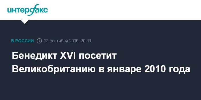 Лондон. 23 сентября. INTERFAX.RU - Папа римский Бенедикт XVI нанесет визит в Великобританию в январе 2010 года, сообщила BBC.