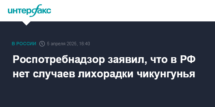 "По информации Роспотребнадзора, с начала 2025 года в мире зарегистрировано свыше 98 тысяч случаев заболеваний лихорадкой чикунгунья вследствие местной передачи возбудителя (...) На территории РФ случаи лихорадки чикунгунья не зарегистрированы", - сообщили журналистам в Роспотребнадзоре.