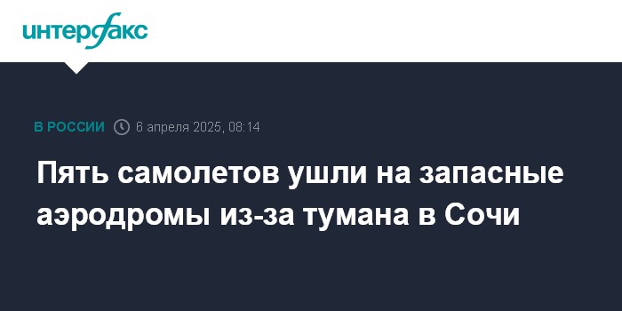 Ранее сообщалось, что с 3 апреля в Сочи из-за тумана не смогли сесть несколько самолетов. Они отправлялись на запасные аэродромы и возвращались в аэропорт назначения, когда туман рассеивался.