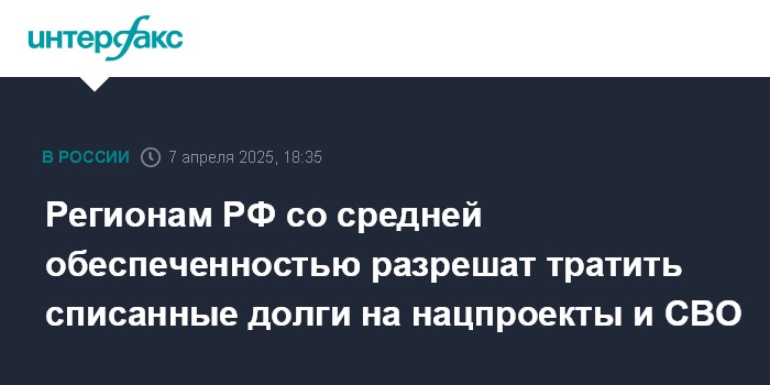 Регионам РФ со средней обеспеченностью разрешат тратить списанные долги на нацпроекты и СВО