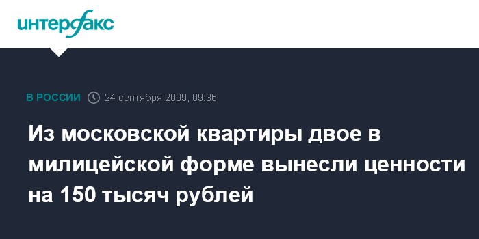 Из московской квартиры двое в милицейской форме вынесли ценности на 150 тысяч рублей
