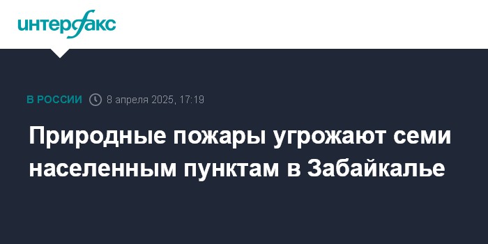 Москва. 8 апреля. INTERFAX.RU - Ландшафтные пожары бушуют в опасной близости от семи населенных пунктов в Забайкальском крае, сообщает Минприроды региона во вторник.