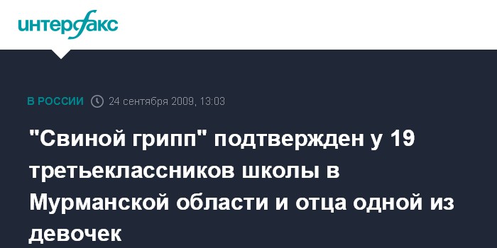 "Свиной грипп" подтвержден у 19 третьеклассников школы в Мурманской области и отца одной из девочек