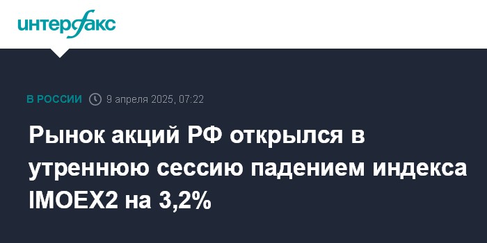 Рынок акций РФ открылся в утреннюю сессию падением индекса IMOEX2 на 3,2%