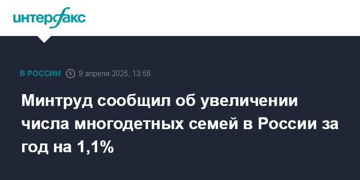 Минтруд сообщил об увеличении числа многодетных семей в России за год на 1,1%
