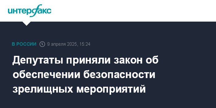 Москва. 9 апреля. INTERFAX.RU - Госдума приняла во втором и в третьем чтении закон № 610819-8 об общественной безопасности при проведении зрелищного мероприятия.