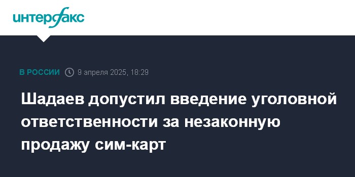 Москва. 9 апреля. INTERFAX.RU - В России могут ввести уголовную ответственность за нарушение правил регистрации сим-карт, сообщил глава Минцифры Максут Шадаев на форуме "Телеком 2025", организованном газетой "Ведомости".