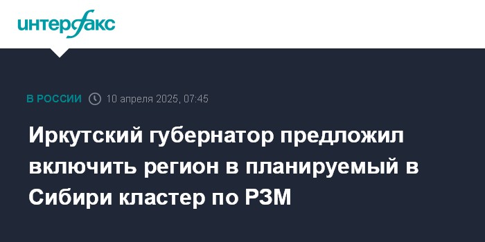Иркутский губернатор предложил включить регион в планируемый в Сибири кластер по РЗМ