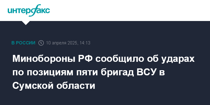 Минобороны РФ сообщило об ударах по позициям пяти бригад ВСУ в Сумской области