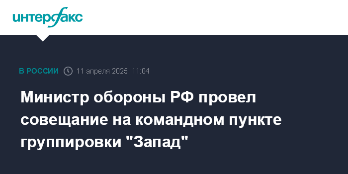 Москва. 11 апреля. INTERFAX.RU - Министр обороны России Андрей Белоусов проинспектировал группировку "Запад" и провел совещание на пункте управления, сообщили в Минобороны РФ в пятницу.
