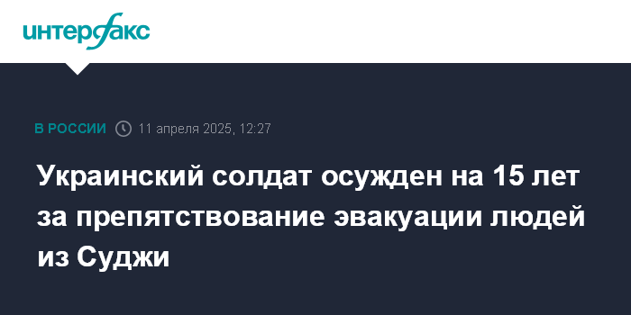Украинский солдат осужден на 15 лет за препятствование эвакуации людей из Суджи