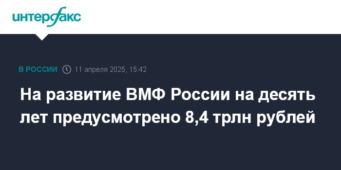 Москва. 11 апреля. INTERFAX.RU - На судостроение для ВМФ России в ближайшее десятилетие предусмотрено 8,4 трлн рублей, заявил президент РФ Владимир Путин.