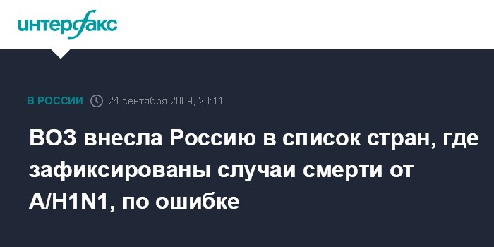 ВОЗ внесла Россию в список стран, где зафиксированы случаи смерти от A/H1N1, по ошибке