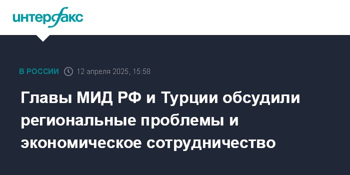 Москва. 12 апреля. INTERFAX.RU - Министры иностранных дел России и Турции Сергей Лавров и Хакан Фидан обсудили положение дел в Закавказье и Черноморском регионе, российско-турецкое экономическое и энергетическое сотрудничество, сообщил МИД РФ.