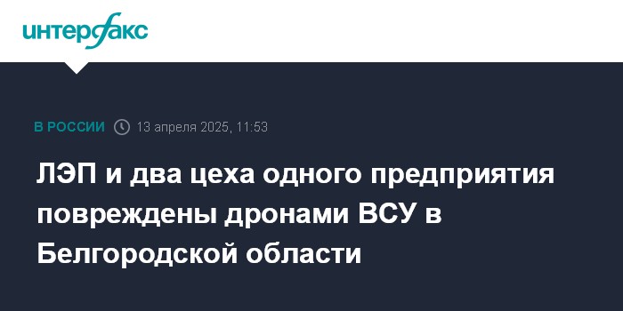 ЛЭП и два цеха одного предприятия повреждены дронами ВСУ в Белгородской области