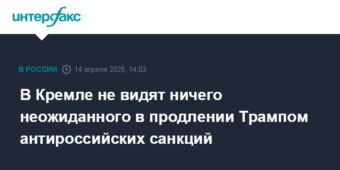 Москва. 14 апреля. INTERFAX.RU - В Кремле в связи с продлением президентом США Дональдом Трампом действия указа прежней администрации о санкциях против РФ заявили, что другого решения вряд ли стоило ожидать.