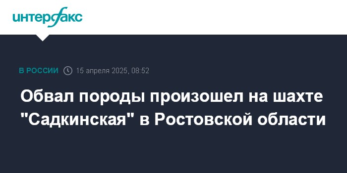 Москва. 15 апреля. INTERFAX.RU - Обвал породы произошел на шахте "Садкинская" в Белокалитвинском районе Ростовской области, предварительно двое шахтеров остаются под завалами, 75 работников подняты на поверхность, сообщил врио губернатора региона Юрий Слюсарь в телеграм-канале.
