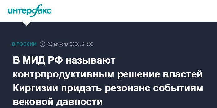 Москва. 22 апреля. INTERFAX.RU - В Москве считают, что учреждение в Киргизии "Дня памяти жертв национального восстания киргизского народа в 1916 году" может негативно сказаться на отношениях двух стран.