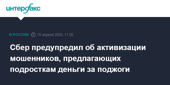 Сбер предупредил об активизации мошенников, предлагающих подросткам деньги за поджоги