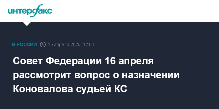 Совет Федерации 16 апреля рассмотрит вопрос о назначении Коновалова судьей КС