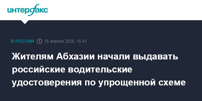 Москва. 15 апреля. INTERFAX.RU - В Абхазии приступили к выдаче по упрощенной системе водительских удостоверений РФ жителям республики, имеющим российское гражданство.