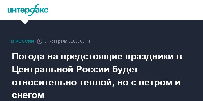 Москва. 21 февраля. INTERFAX.RU - В День защитника Отечества в центре европейской части России ожидается оттепель, но с ветром, снегом и гололедом, сообщил директор Гидрометцентра Роман Вильфанд.