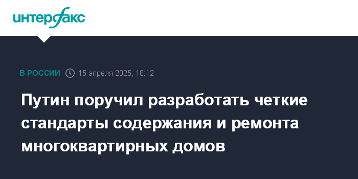 Москва. 15 апреля. INTERFAX.RU - Президент Владимир Путин заявил о важности повышения качества и прозрачности работы управляющих компаний и поручил разработать четкие стандарты по содержанию и ремонту многоквартирных домов. Он сказал об этом на расширенном заседании президиума Госсовета в режиме видеоконференции.