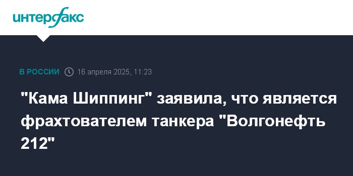 "Кама Шиппинг" заявила, что является фрахтователем танкера "Волгонефть 212"