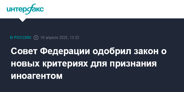 Москва. 16 апреля. INTERFAX.RU - Совет Федерации одобрил закон о расширении регулирования контроля за деятельностью иностранных агентов.