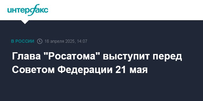 Глава "Росатома" выступит перед Советом Федерации 21 мая
