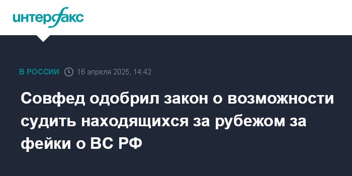 Совфед одобрил закон о возможности судить находящихся за рубежом за фейки о ВС РФ