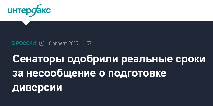 Сенаторы одобрили реальные сроки за несообщение о подготовке диверсии