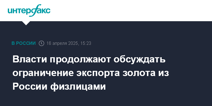 Москва. 16 апреля. INTERFAX.RU - Российские власти продолжают обсуждать ограничение экспорта золота физлицами, и Минфин вернулся к позиции, что это идея правильная.