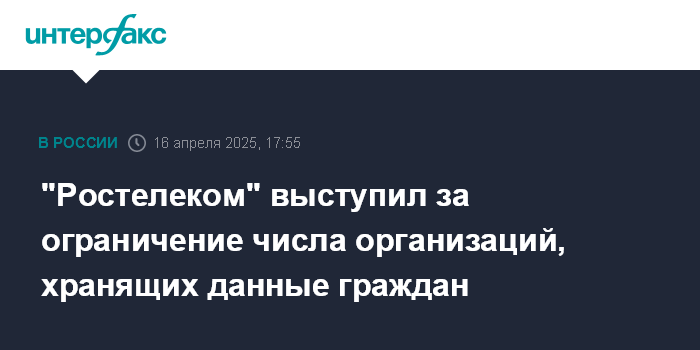 "Ростелеком" выступил за ограничение числа организаций, хранящих данные граждан