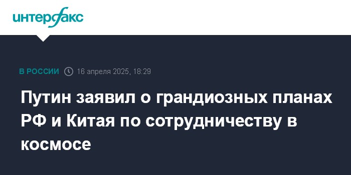 Москва. 16 апреля. INTERFAX.RU - У России и Китая есть масштабные планы по сотрудничеству в космосе, заявил президент РФ Владимир Путин.