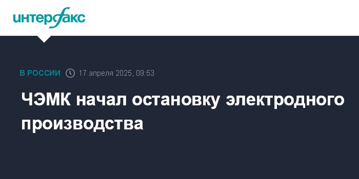 Москва. 17 апреля. INTERFAX.RU - АО "Челябинский электрометаллургический комбинат" (ЧЭМК) начало останавливать производство электродной продукции, сообщил губернатор Челябинской области Алексей Текслер на церемонии начала остановки.