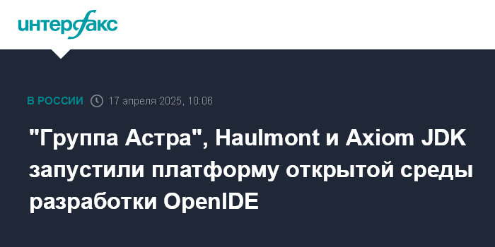 "Создание совместного предприятия - это следующий шаг на пути развития партнерства между "Группой Астра" и компаниями Haulmont (создает инструменты для разработчиков) и Axiom JDK (разрабатывает и поддерживает платформу Java) для создания и развития открытой российской среды разработки - OpenIDE, - отмечали ранее "Интерфаксу" в пресс-службе "Группы Астра". - Целью проекта является удовлетворение в полном объеме потребностей российского рынка в современной, безопасной и лицензионно чистой среде разработки".