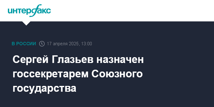 Сергей Глазьев назначен госсекретарем Союзного государства
