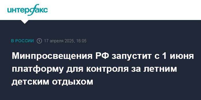 Минпросвещения РФ запустит с 1 июня платформу для контроля за летним детским отдыхом
